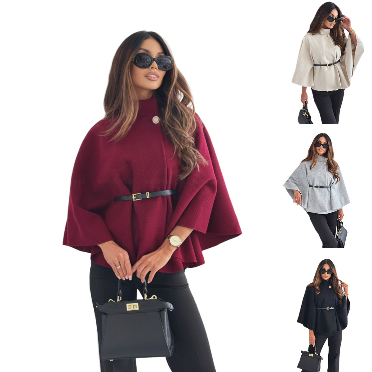 - Ceinture flatteuse : elle souligne la taille et ajoute une touche féminine à la coupe cape.